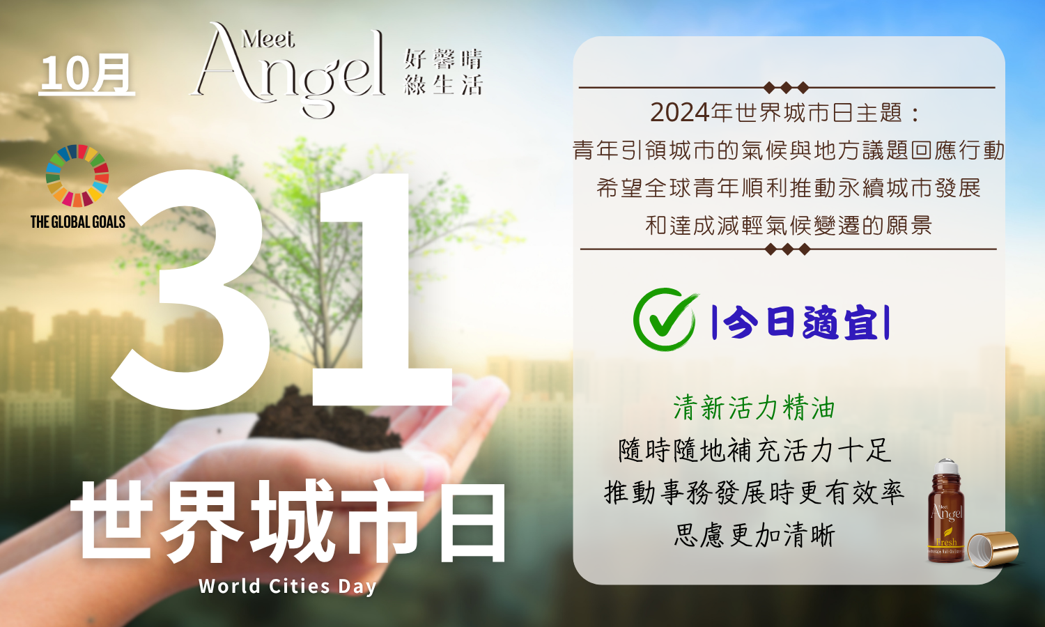 建議行動:為身邊重視與熱情投入環境永續發展的年輕朋友們,奉上一瓶「MeetAngel Fresh清新活力精油」,隨時隨地補充活力十足,推動事務發展時更有效率,思慮更加清晰。
