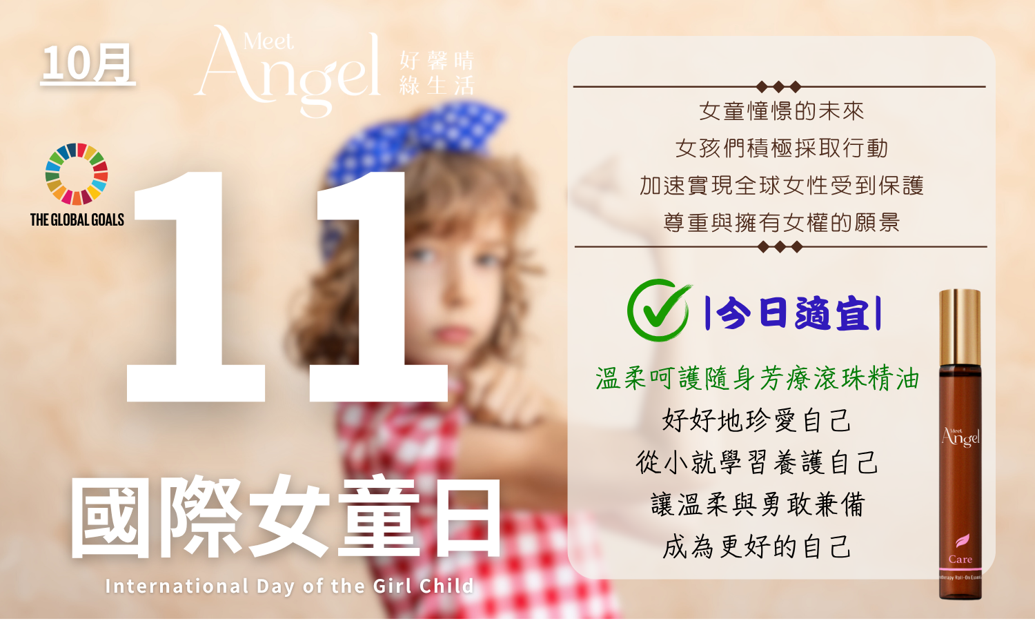 建議行動:新世代的女孩兒們,可以採用「MeetAngel Care溫柔呵護隨身芳療滾珠精油」,好好地珍愛自己。從小就學習養護自己,讓溫柔與勇敢兼備,成為更好的自己。