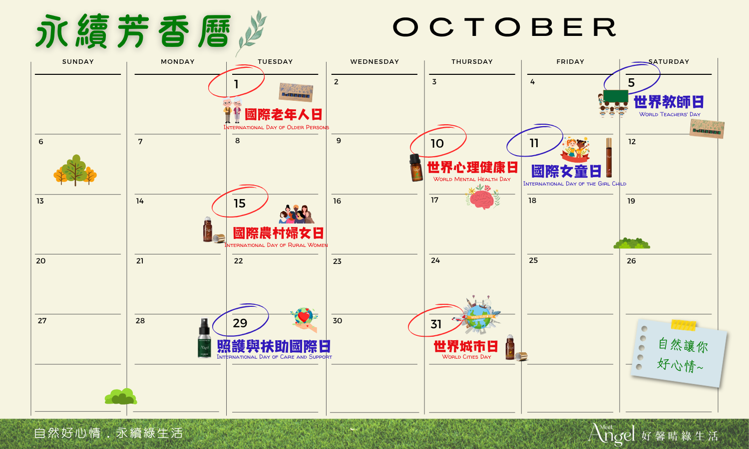 10月份,好馨晴綠生活陪您自然好心情,永續綠生活。