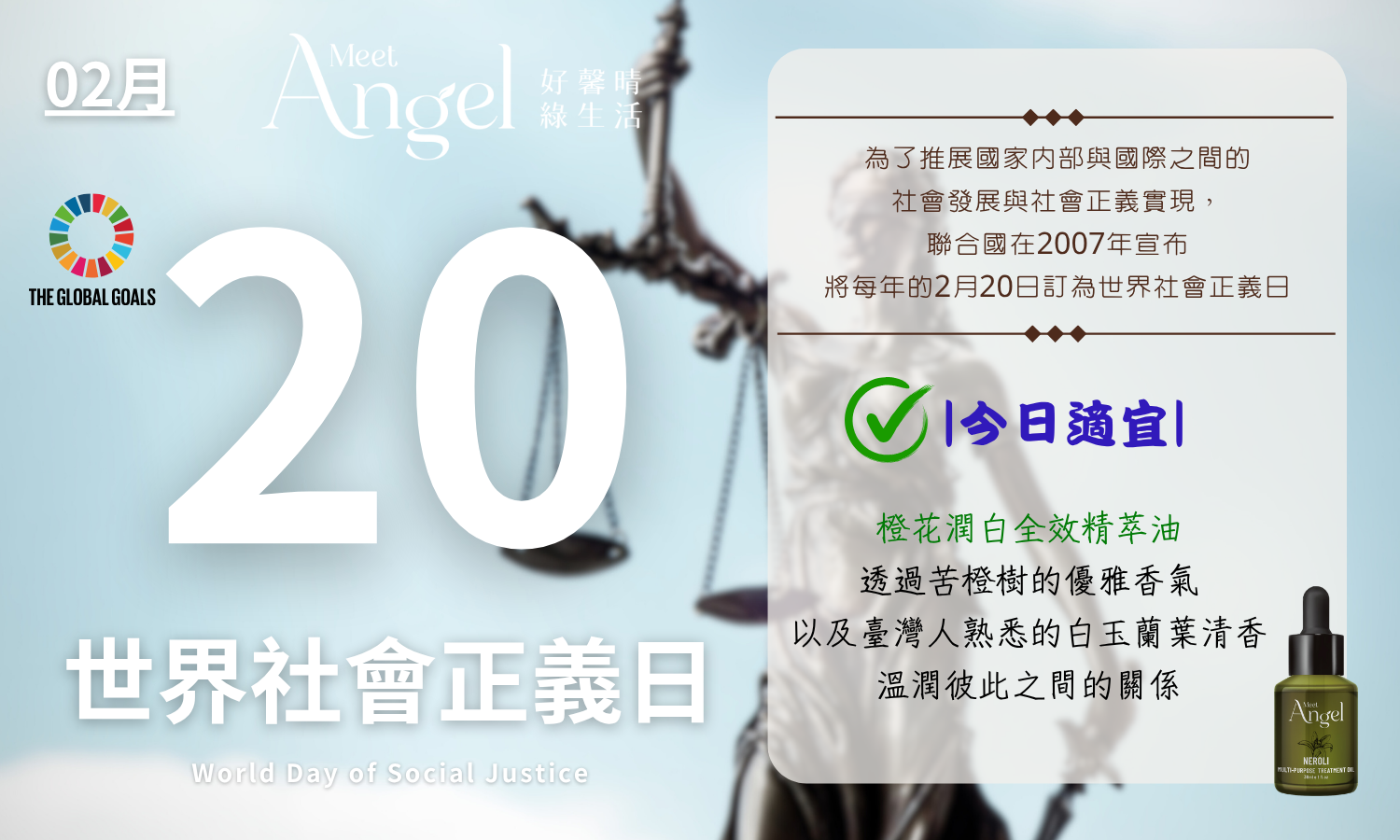 意涵:為了推展國家內部與國際之間的社會發展與社會正義實現,聯合國在2007年宣布將每年的2月20日訂為世界社會正義日。