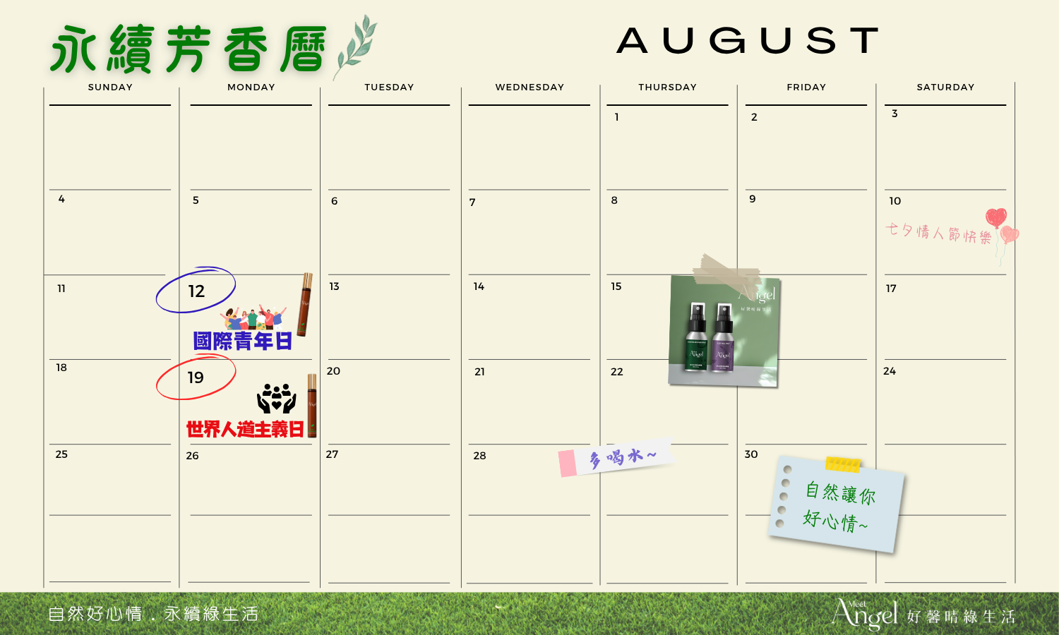 8月份,好馨晴綠生活陪您自然好心情,永續綠生活。