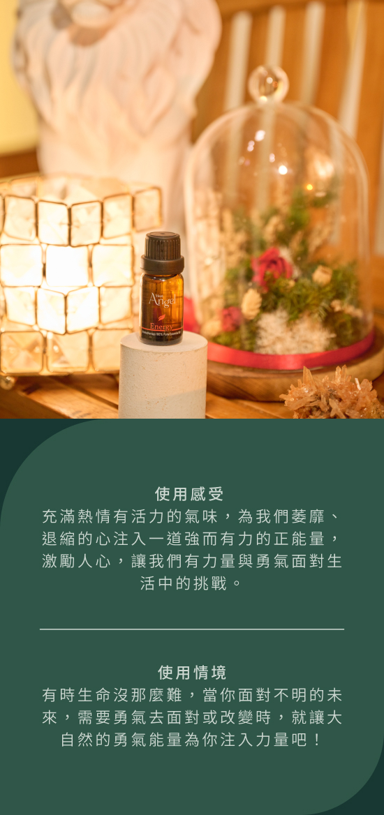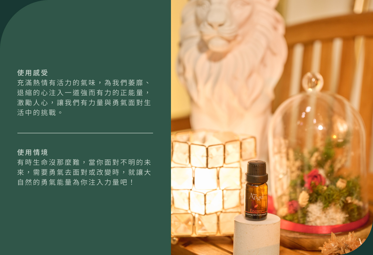 生活中總是會遇到困難和挑戰,需要勇氣與力量幫我們度過關卡,充滿能量與熱情的香氣,讓我們能為自己挺身而出、更有勇氣面對進階版的自己。