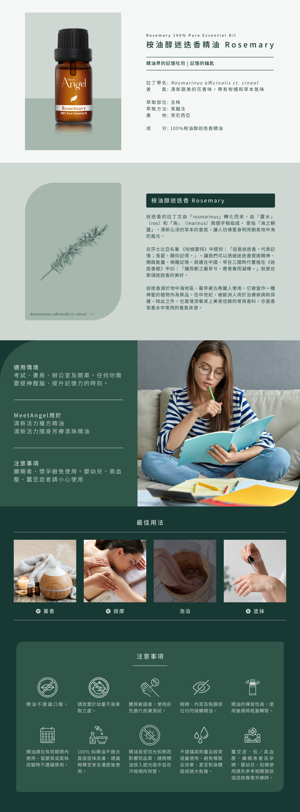 迷迭香的拉丁文由「rosmarinus」轉化而來,由露水(ros)和海(marinus) 兩個字跟組成,意指「海之朝露」,清新沁涼的草本香氣,讓人仿佛置身明亮朝氣地中海的風光。透過迷迭香能提振精神,開啟能量,喚醒記憶。